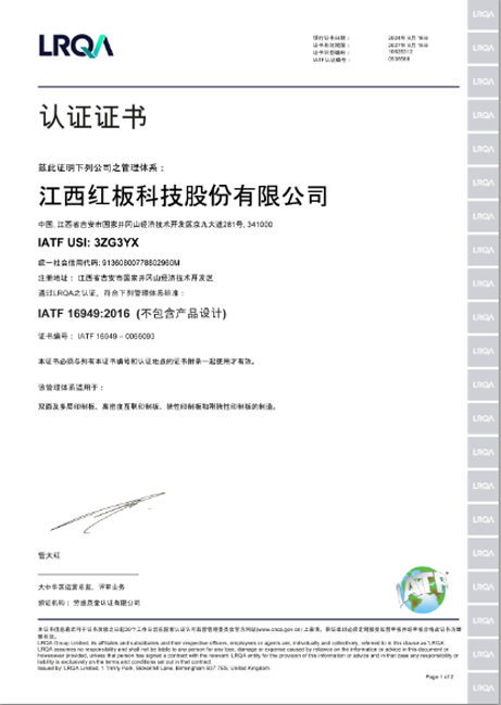 江西taptap点点体育科技股份有限公司于2009年正式获得IATF16949体系证书,经过多年的持续改善,已能有效的保证汽车用的线路板的品质,提升客户满意度。